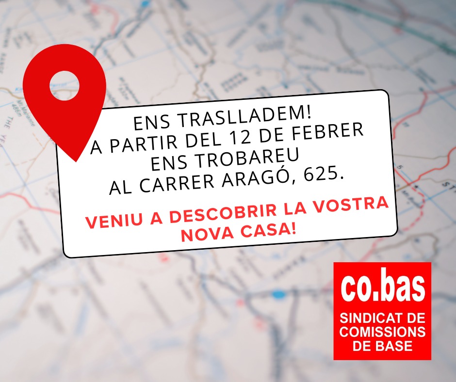 Us informem del nostre trasllat a un nou espai, és al carrer Aragó, 625 de Barcelona.